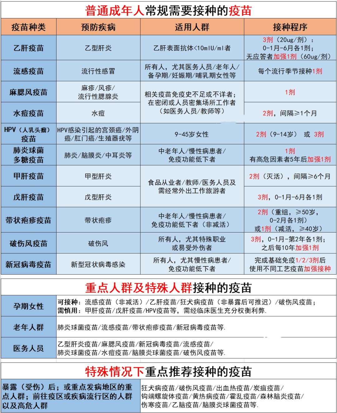 如今,以前的很多自费疫苗都可以免费打了。而推荐成年人打的疫苗也越来越多。