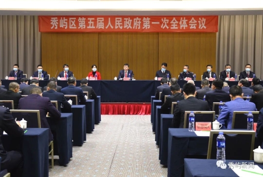 12月26日上午,区“两会”刚刚胜利闭幕,秀屿区人民政府立即召开第一次全体会议,区委副书记、区长郑松青主持并讲话。