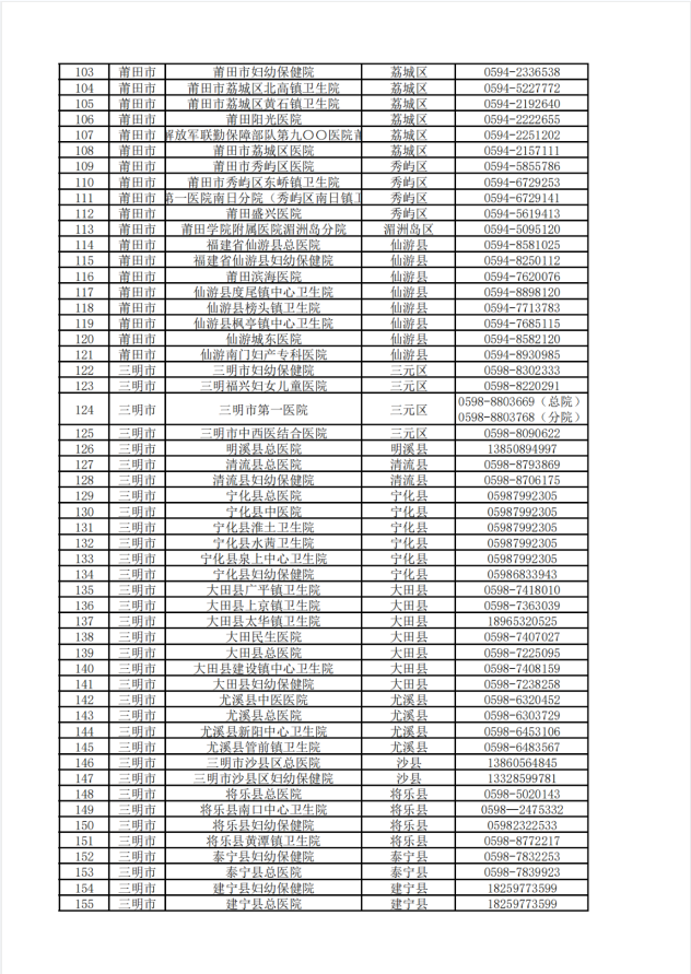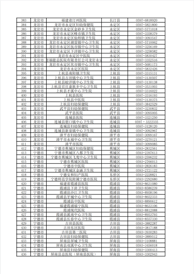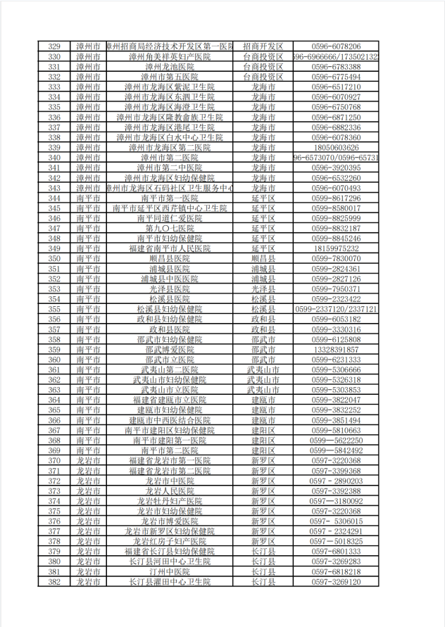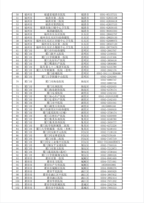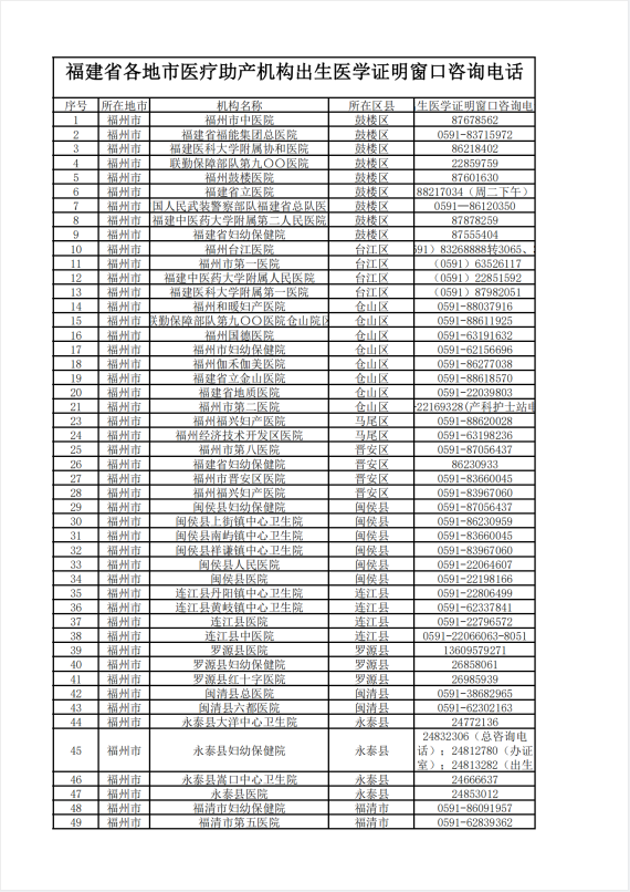 福建省各地市医疗助产机构出生医学证明窗口咨询电话