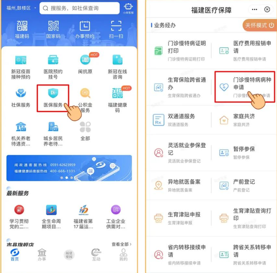 门诊慢特病待遇资格认定线上操作流程:参保人员登录闽政通APP+进入[医保服务]专区+[业务经办]模块+点击[门诊慢特病病种申请]+填写相关信息点击[保存]提交申请。参保人员可以通过[我的办件]查询办理进度。