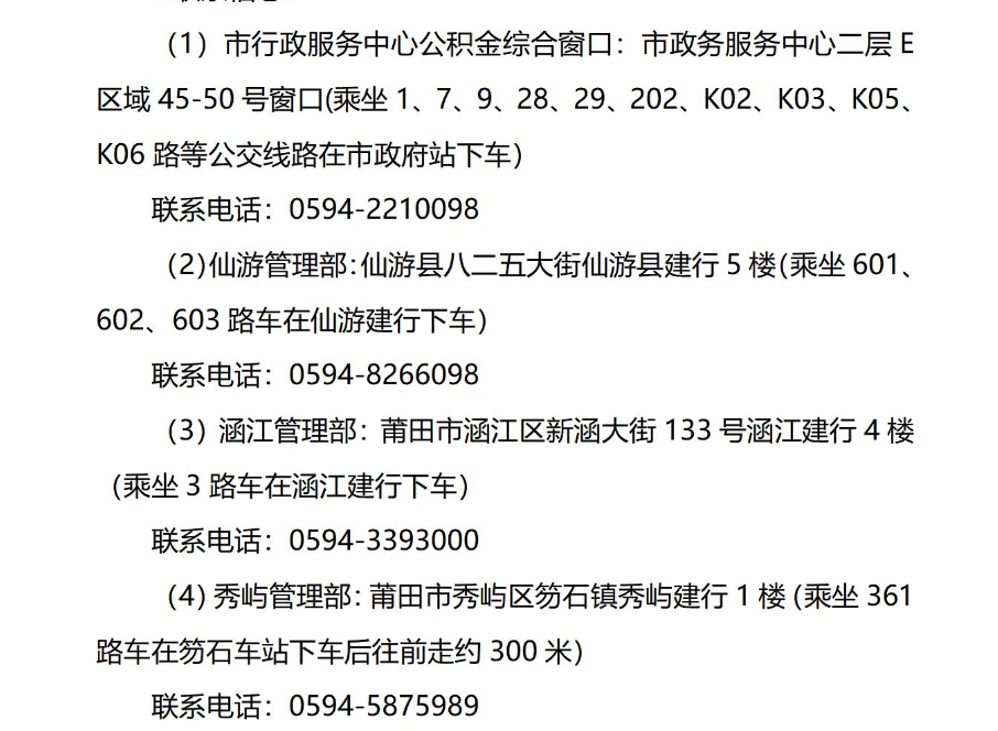 (5)租房提取住房公积金相关业务咨询电话为:059412329