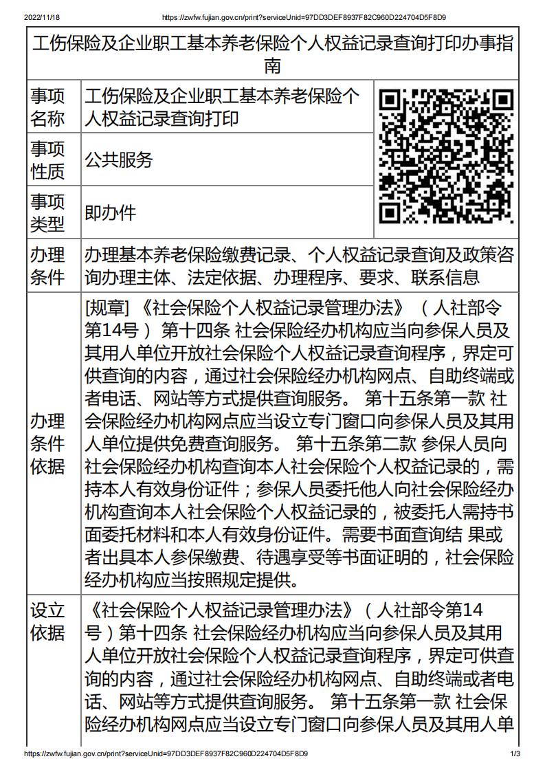 工伤保险及企业职工基本养老保险个人权益记录查询打印