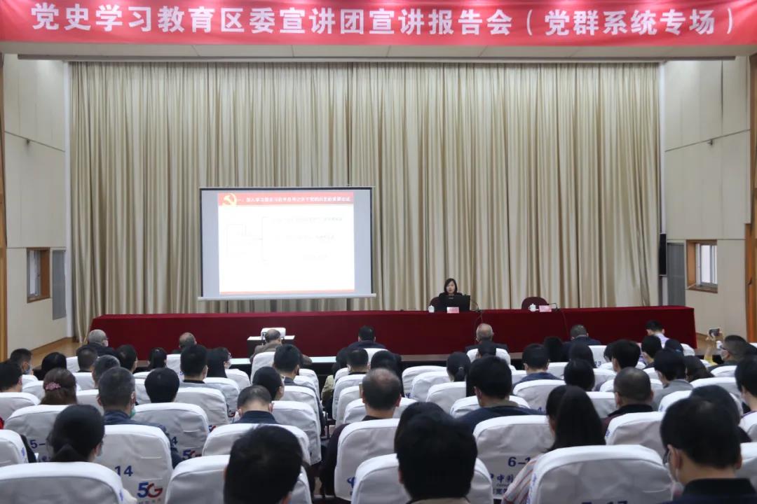 4月16日,党史学习教育区委宣讲团宣讲报告会在区党群系统举行。区委宣讲团成员、区委党校讲师黄素玲作宣讲报告。