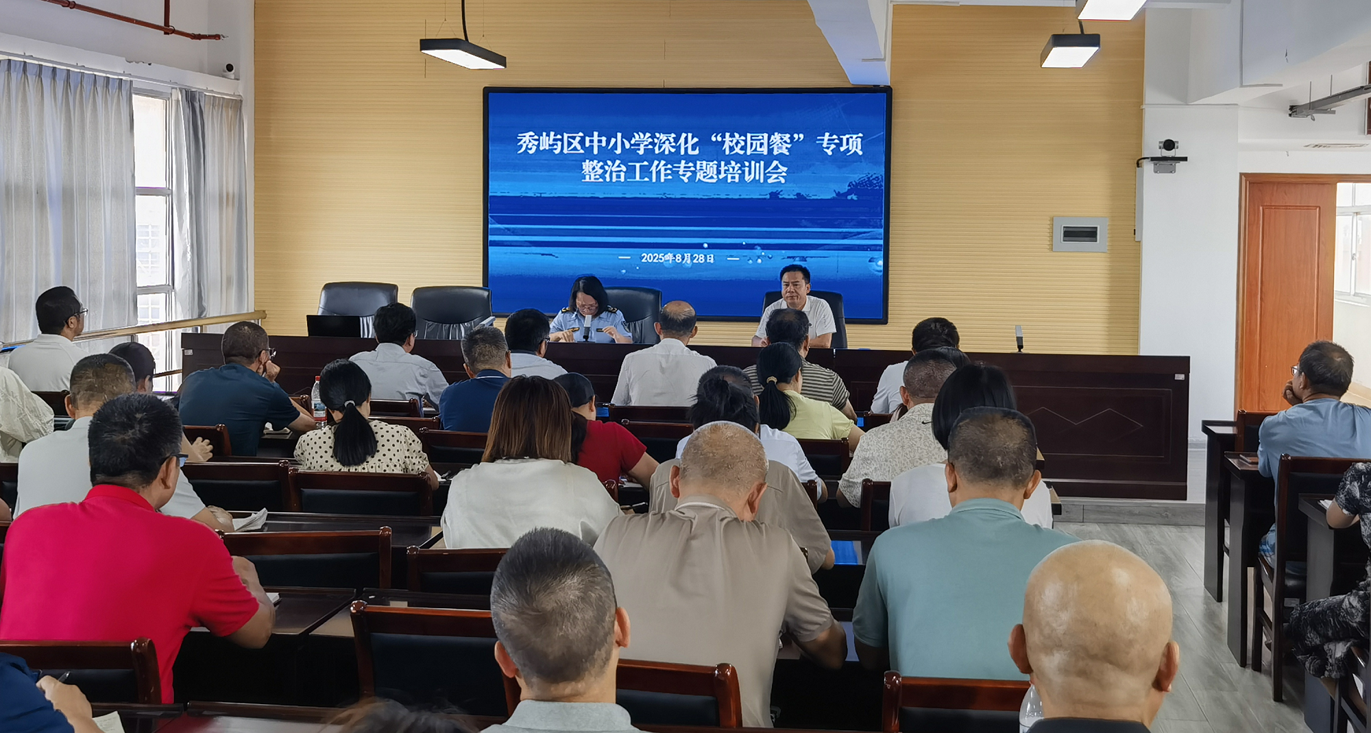 开学在即,为强化校园食品安全监管,坚决守护好师生“舌尖上的安全”,8月28日下午,秀屿区中小学深化“校园餐”专项整治工作专题培训会举行。各校(园)分管食品安全工作副校(园)长、食品安全总监、食品安全员、其他重点岗位人员,各开办食堂学校从业人员等参加培训。