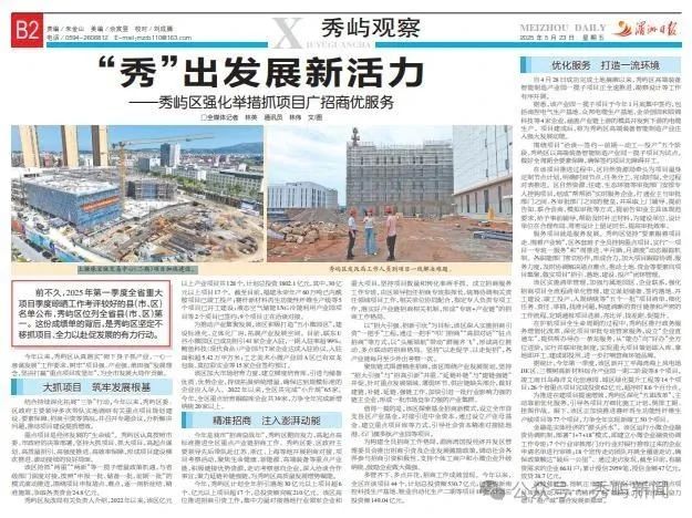 前不久,2025年第一季度全省重大项目季度晾晒工作考评较好的县(市、区)名单公布,秀屿区位列全省县(市、区)第一。这份成绩单的背后,是秀屿区坚定不移抓项目、全力以赴促发展的有力行动。