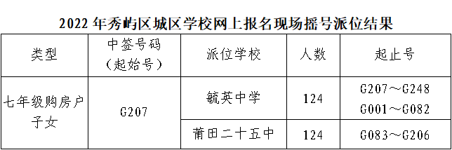 附件:2022年秀屿区城区学校七年级招生网上报名现场派位结果