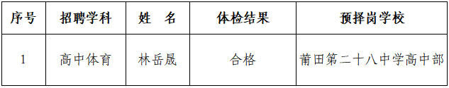 现将2025年秀屿区考核招聘新任教师递补对象体检结果及预择岗情况公告如下: