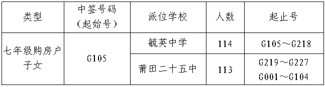2023年秀屿区毓英中学网上报名现场摇号派位结果