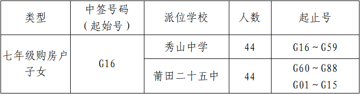 2024年秀屿区秀山中学七年级网上报名现场摇号派位结果