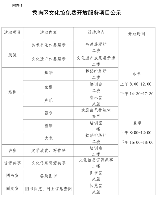 附件 1.秀屿区文化馆免费开放服务项目公示