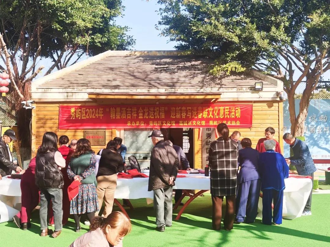 为不断推动主题教育走深走实,进一步丰富居民群众的精神文化生活,1月18日上午,秀屿区武术协会联合秀屿区文化馆、荔城区文化馆与秀屿区书法家协会会员一同在区政府市政广场举行开展“翰墨洒吉祥 金龙送祝福”写送春联活动。