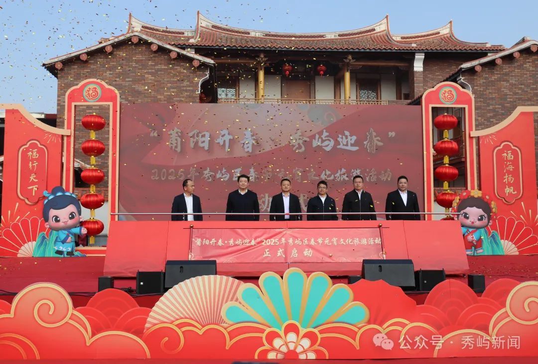 为贯彻落实市委市政府来莆田过大年的部署要求,秀屿区委、区政府积极行动认真落实,向四海宾朋、家乡游子发出《请来莆田过大年、秀屿新春欢迎您——秀屿人民致四海宾朋、家乡游子的一封信》,现场进行宣读后播放视频《来秀屿过大年 体验别样新春》,全方位展示秀屿年味,让人们对秀屿的“年味”充满期待。播放结束后,与会领导共同上台推杆,宣布“莆阳开春·秀屿迎春”2025年秀屿区春节元宵文旅活动正式启动。