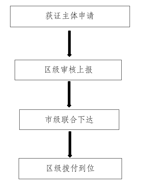 按照“获证主体申请、区级审核上报、市级联合下达、区级拨付到位”的流程进行。