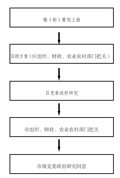 5.申报程序:根据省组织、财政、农业农村部门分配我区发展新型农村集体经济扶持村的数量,再分解给镇(街)。镇(街)策划上报,区制定发展新型农村集体经济的实施方案,经区组织、财政、农业农村部门把关,报区党委政府研究同意。经市组织、财政、农业农村部门把关,报市级党委政府研究同意。