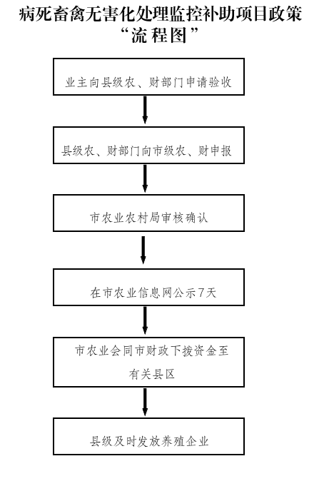 实行先建后补,项目单位应先通过所在县区农业主管部门 上报项目实施方案,明确建设内容、申请补助金额和建设期限, 市农业农村局审核后予以批复。项目建设单位完工后,向县级农、财部门申请验收并联合行文向市农业农村局、财政局申报资金,市农业农村局审核确认补助单位及金额,并在市农业信息网公示 7 天无异议后,会同市财政下拨补助资金至有关县区, 由县区下达至畜禽养殖场。