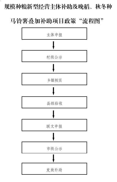 对早季沿海旱地和山坡地(不含平原灌溉条件较好的水 田)规模种植早甘薯、大豆、玉米、旱稻等粮食作物,山区规模种植中稻、甘薯、大豆、玉米等粮食作物,晚季和秋冬季规模种植晚稻、再生稻、甘薯、马铃薯、大豆、玉米等粮食作物的新型农业经营主体予以补助(以上大豆、玉米只限补助成熟后收获干籽粒的大豆、玉米,旱稻只限补助应用耐旱品种且使用节水灌溉设施的旱稻),同时对规模种植晚稻和秋冬种马铃薯再予以叠加补助。