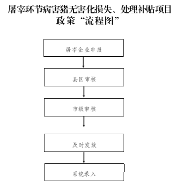 屠宰环节病害猪损失补贴 800 元/头,无害化处理费用补贴 80 元/头。不可食用的生猪产品按 90 公斤折算一头予以补贴,累计未达 90 公斤不予补贴。对于进入定点屠宰场前已死亡的生猪和各有关执法部门在屠宰场外各环节查获的必须无害化处理的生猪及其产品,对货主不予补贴,对其无害化处理单位给予处理费用补贴。补贴资金由省级以上财政承担 70%, 市、县(区)财政各承担 15%。