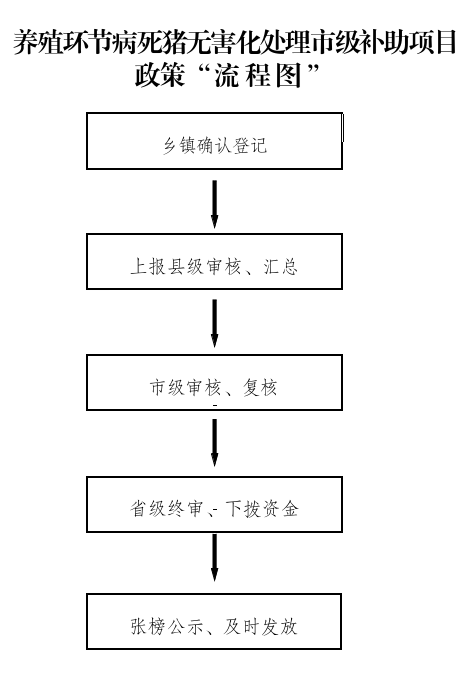 养殖场处理病死猪数量由当地乡镇政府指定人员现场签名确认,经所在乡镇人民政府盖章,报县级农业、财政部门汇 总上报,市级农业、财政审核盖章报省农业农村厅,由省财政、 农业农村厅联合下拨省级以上补助资金至各县区,市财政、农业下拨市级配套资金至各县区,在补助资金下拨前将养殖场名称、无害化处理数量、补助标准和补助金额等情况在村张榜公示七天,后由当地农业部门、财政部门下拨至各生猪养殖场。