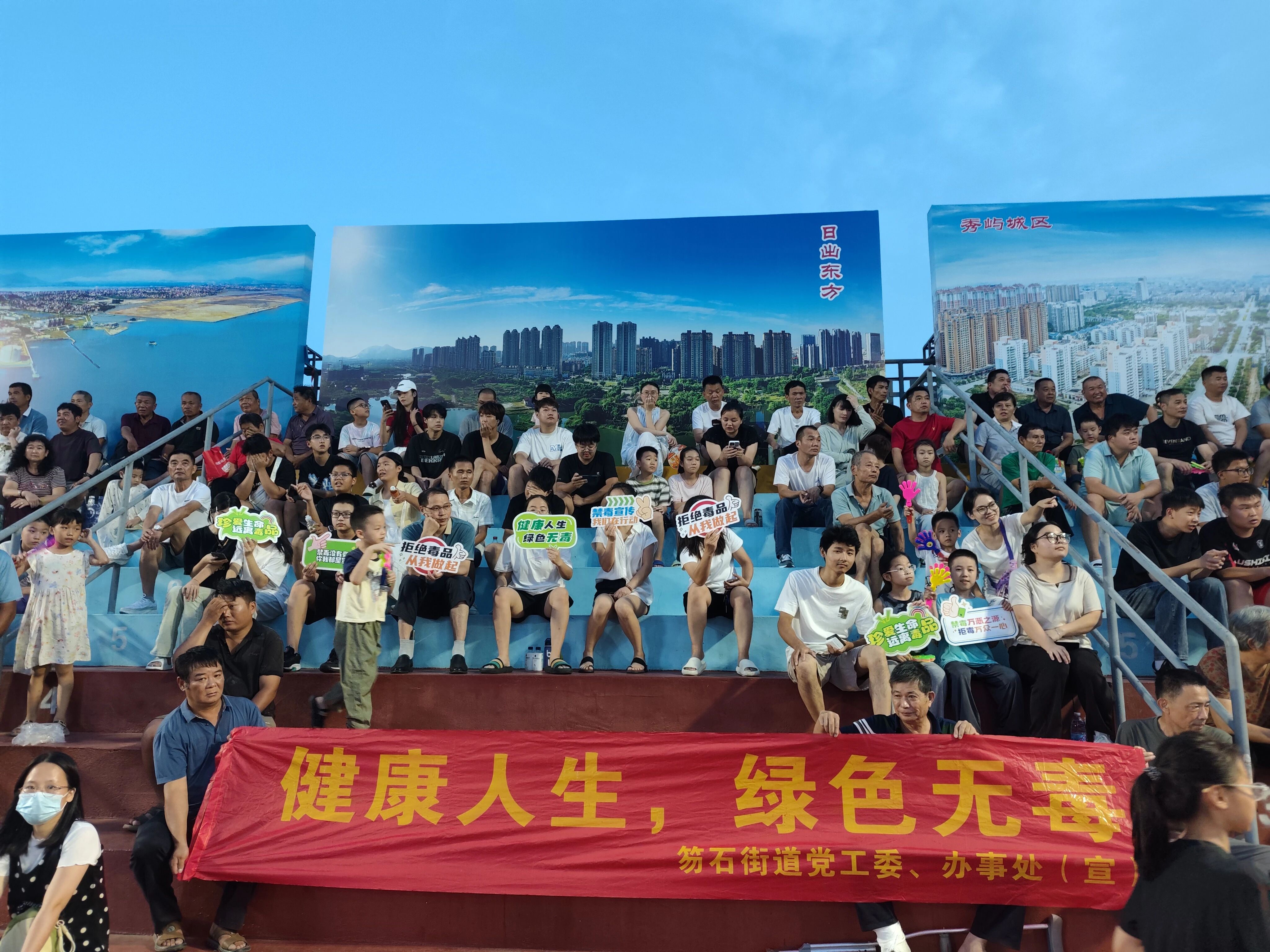 一是“村”BA遇上禁毒宣传:活力碰撞,深入人心。8月19日,莆田市第六届运动会群众部篮球赛在秀屿区智慧体育公园火热开幕。区文旅局、笏石街道以此次体育盛会为契机,借助赛事期间人气旺、关注度高、群众参与度强的特点,将禁毒宣传课堂“搬”到了篮球场边。在场馆入口、观众席间,禁毒社工、志愿者通过设立禁毒知识展板、悬挂醒目横幅、发放宣传手册等方式,向观赛的村民和球员们普及毒品的种类、危害以及相关法律法规。一幅幅触目惊心的图片,一个个发人深省的案例,让群众在享受体育激情的同时,也能直观感受到毒品的巨大危害,筑牢“珍爱生命,远离毒品”的思想防线。