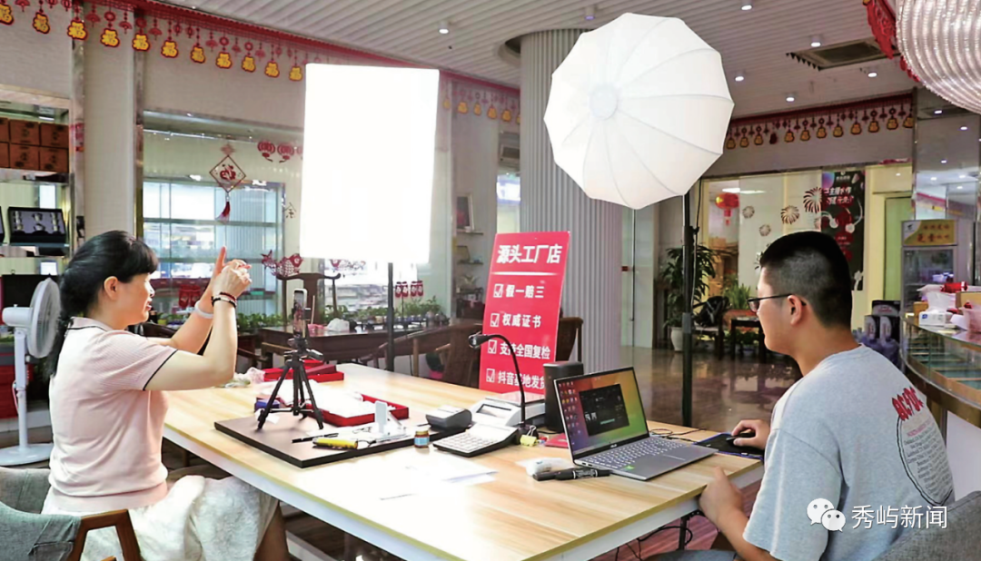 入驻电商直播推介珠宝。 近段时间,在上塘珠宝城一栋建筑里,由星球珠宝集团打造的百个直播间陆续投用。这些大大小小的直播间里,灯光、摄像、网络等设施设备一应俱全,可“拎包入驻”,不仅能容下大团队,“小主播”也有一席之地。 与此同时,金福全珠宝集团也在园区内加快建设5000平方米直播间,融入电商直播新潮流。 “当前,珠宝直播电商成为一些直播平台增速最快的类目频道之一。”朱丽芳介绍,依托上塘现有的银饰产业带资源优势,园区正积极打造上塘珠宝直播电商楼宇经济新业态,推动组建珠宝产业供应链服务联盟和直播电商创新创业孵化平台,服务产业转型发展。 作为我省首批“互联网+银饰珠宝”区域化链条化试点单位,这些年,上塘珠宝城持续在“互联网+”深耕发力,带动园区企业商户紧抓直播风口,迈入发展快车道。在此基础上,与淘宝官方签约合作建设珠宝行业淘宝直播基地,利用资源和流量优势,打造“产业带+直播”新模式。通过对接MCN机构,举办千场“网红”直播,带动交易量的提升。目前正积极争取落地抖音直播基地,打造全国一流的银饰购销平台。 上塘珠宝城将紧盯目标,强化产业扶持,加大招商力度,做好产业延链、强链、补链工作,提升核心竞争力,实现品牌与龙头发展,时尚与技术创新,促进产业高质量发展。