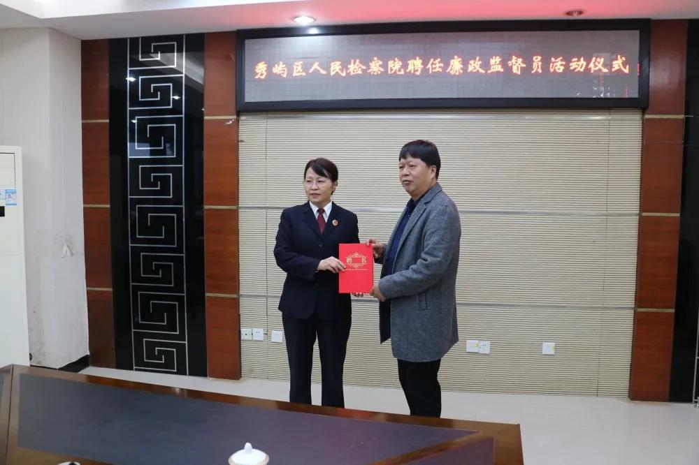近日,为加强外部监督力度,秀屿区检察院举行了廉政监督员聘任仪式,聘陈志强、吴国荣等7位同志为该院廉政监督员,任期三年。会上,该院向新聘任的6名廉政监督员颁发了聘书,并就《莆田市秀屿区人民检察院工作报告》向新聘任的廉政监督员征求意见,受聘的廉政监督员纷纷发言对该院工作给予了高度评价。