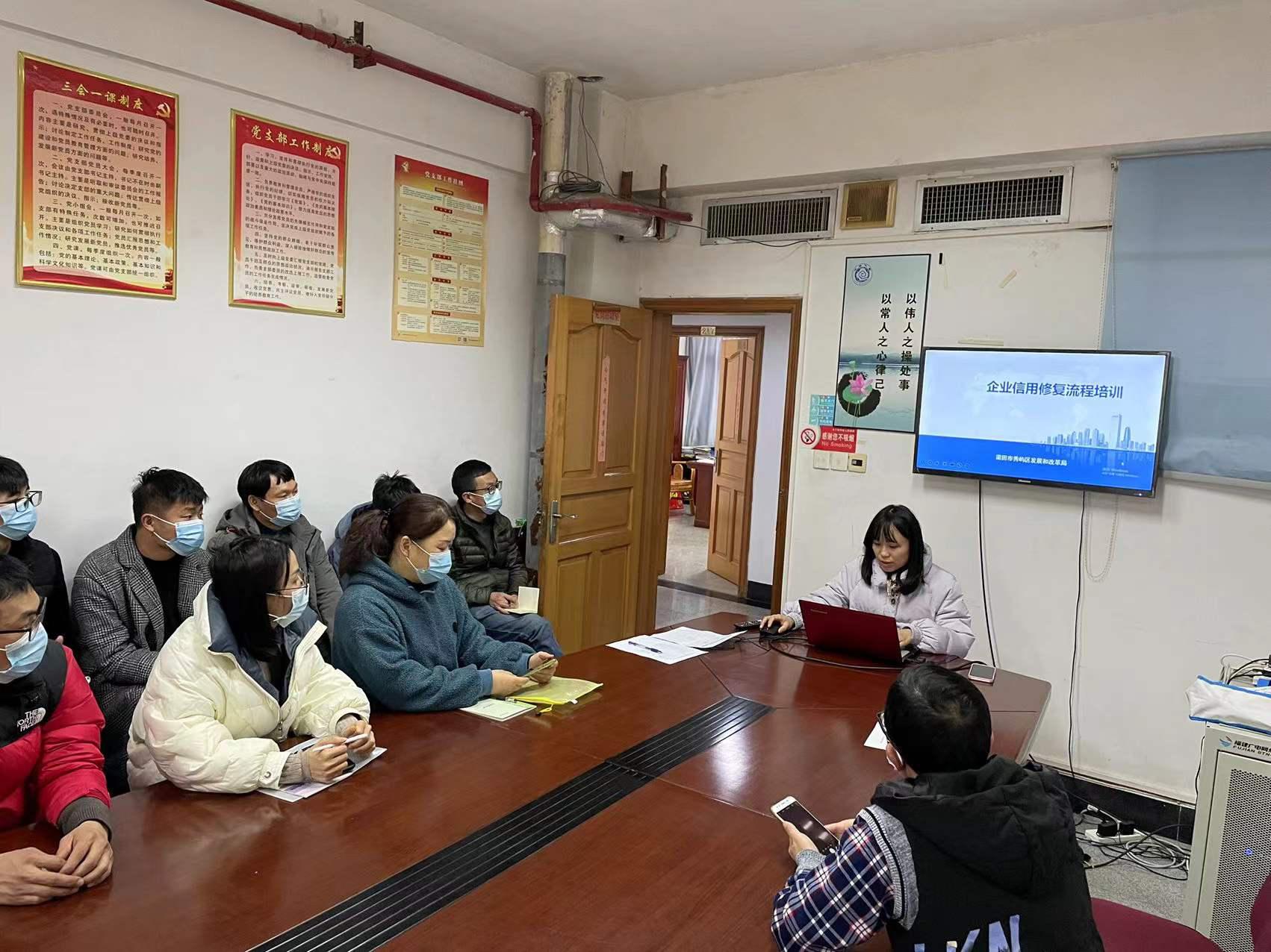 2022年1月13日下午,秀屿区信用办联合区交通运输局、秀屿生态环境局开展交通领域、生态环境领域的企业信用培训。培训现场由区信用办干部对如何在信用中国上在线申请信用修复做了流程演示,并现场答疑企业提出的问题。本次培训共有28家企业参加,进一步提高了失信主体接受信用修复的培训率,扩大信用修复的覆盖面。