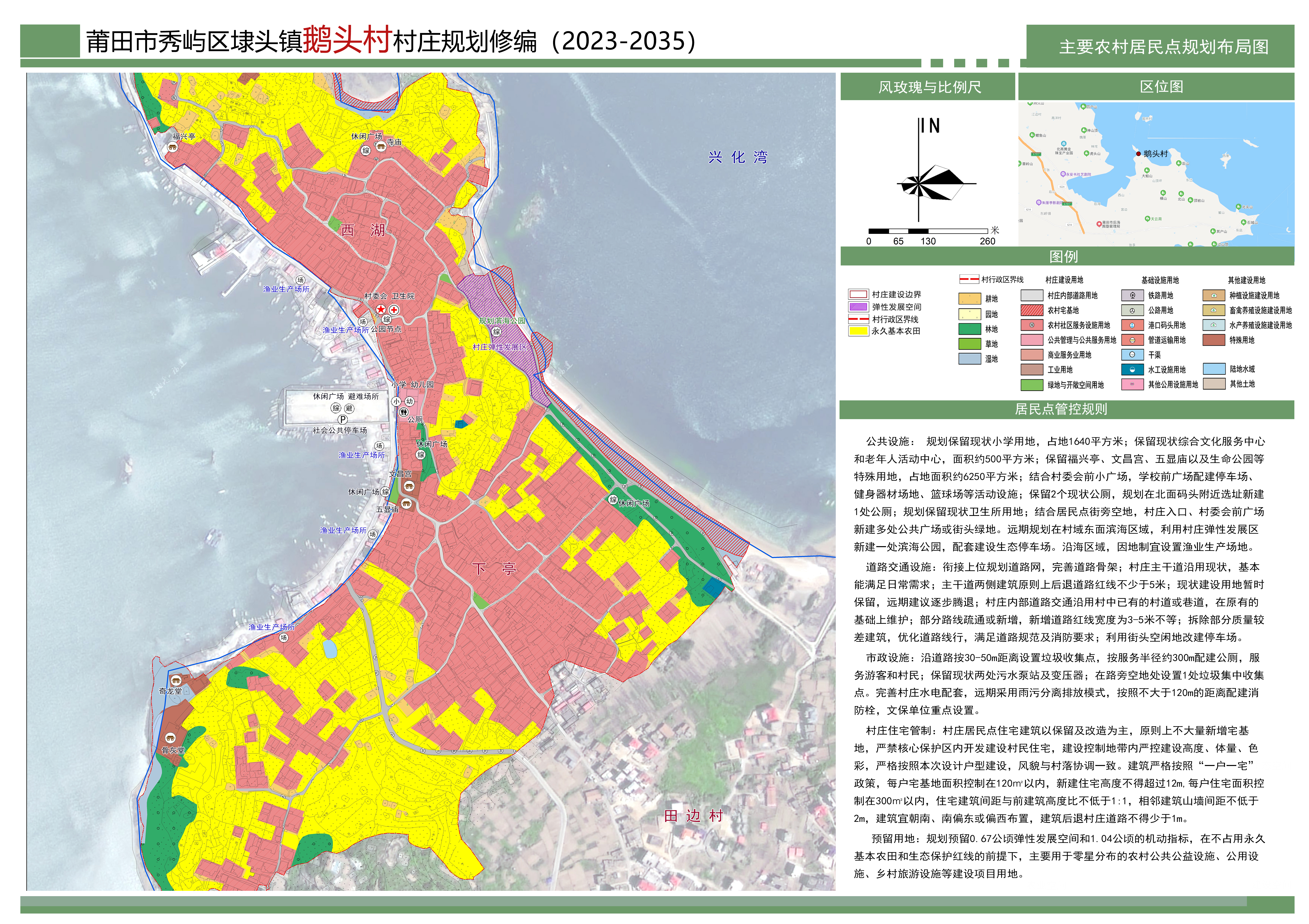 《秀屿区埭头镇鹅头村村庄规划修编(2023-2035年)》由海德联创设计集团有限公司编制,规划方案经各部门意见征询、专家评审和公示后,2024年8月30日经莆田市秀屿区人民政府批复(莆秀政〔2024〕151号)。根据《中华人民共和国城乡规划法》、《福建省村庄规划编制指南(试行)》等相关法律法规要求,现将规划成果予以公布。