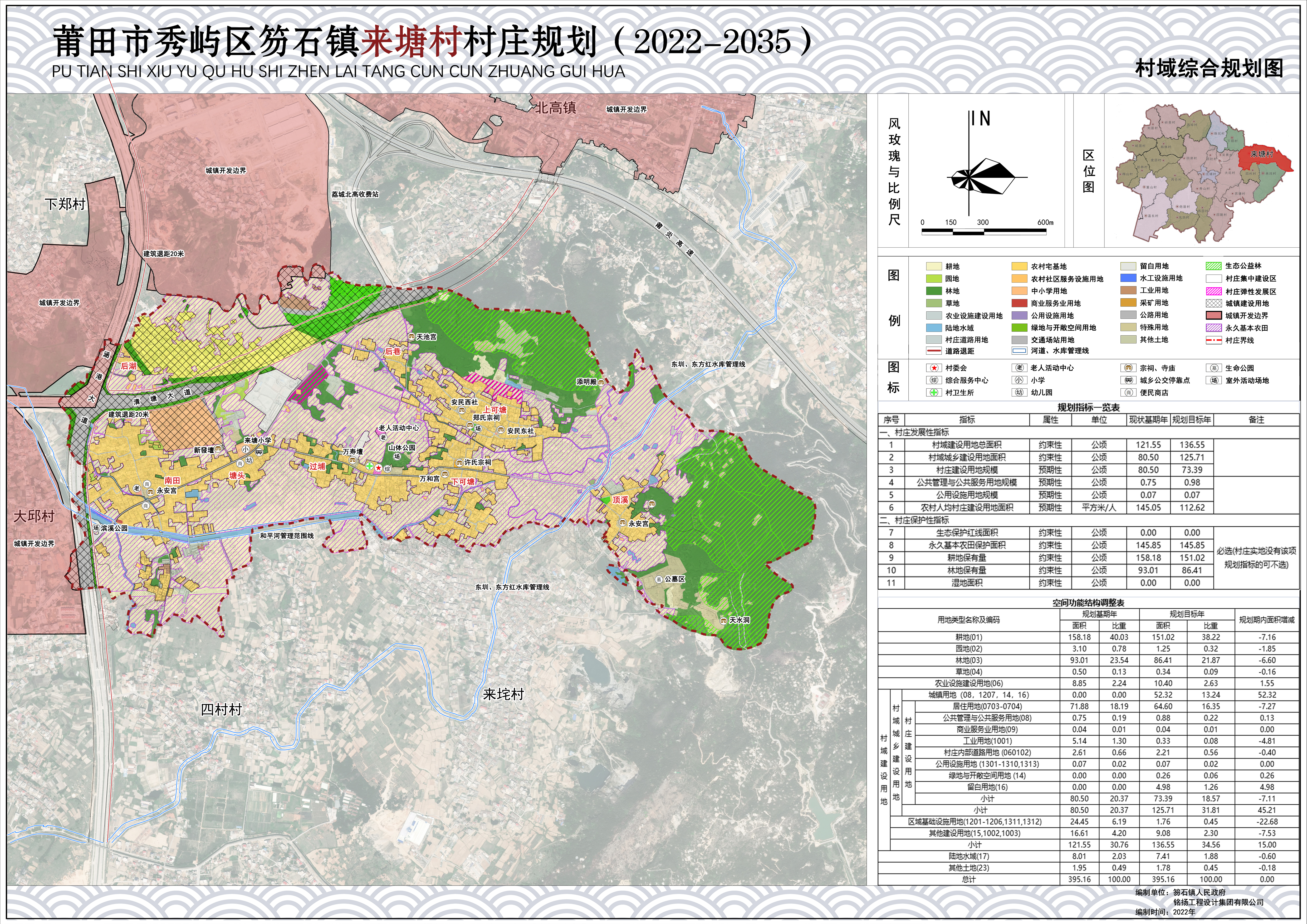 《秀屿区笏石镇来塘村村庄规划(2022-2035)》由铭扬工程设计集团有限公司编制,规划方案经各部门意见征询、专家评审和公示后,2022年9月27日经莆田市秀屿区人民政府批复(莆秀政〔2022〕165号)。根据《中华人民共和国城乡规划法》、《福建省村庄规划编制指南(试行)》等相关法律法规要求,现将规划成果予以公布。
