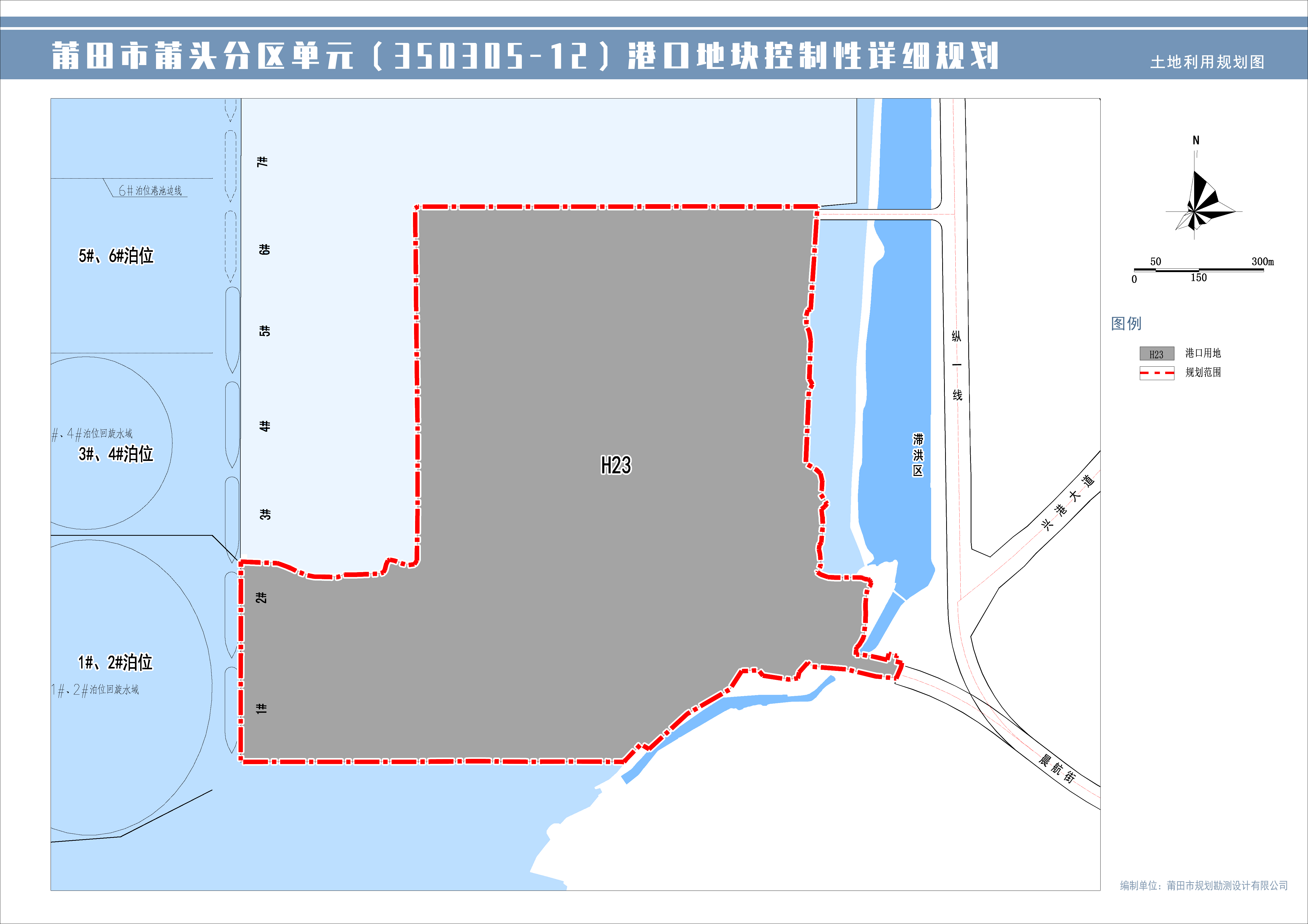 莆田市莆头分区单元(350305-12)港口地块规划四至范围:西、南、北至现状湄洲湾海域,东至现状滞洪区,规划总用地面积约为 133.0 公顷。