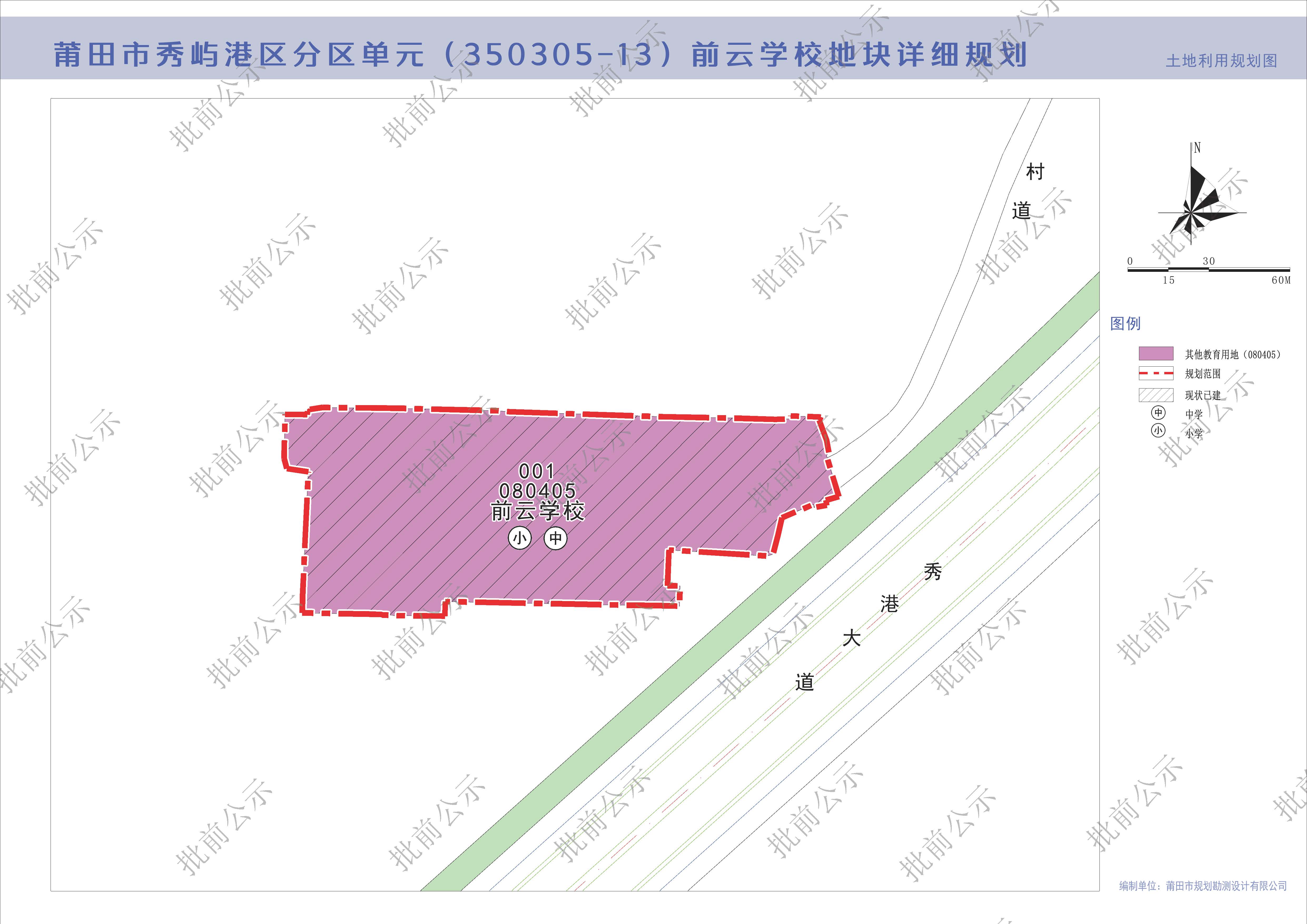 关于《莆田市秀屿港区分区单元(350305-13) 前云学校地块详细规划》(草案)的公示