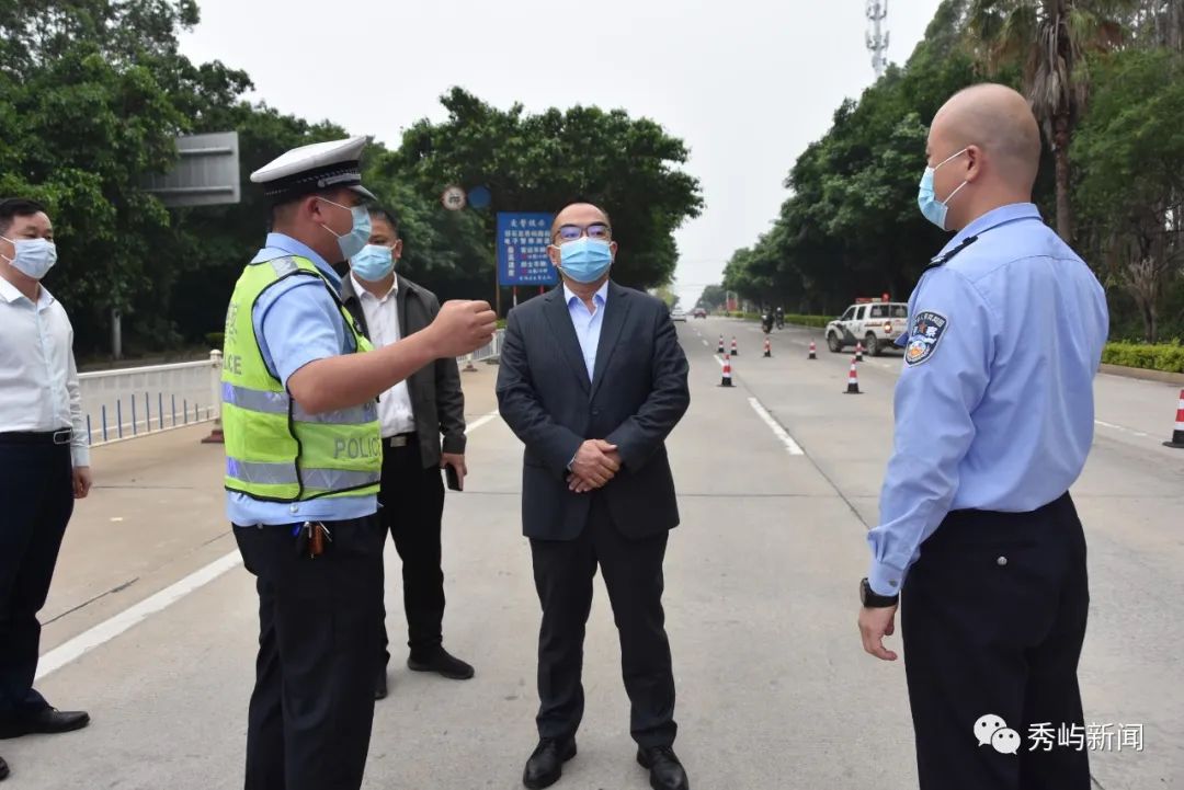 张伯松一行先后来到秀北线佳通路段、凌岱路和木材加工区等地,实地巡查勤务组织、交通流量、车辆查控等,详细了解道路交通事故预防工作开展情况,对进一步做好道路交通安全管理、疫情防控、文明创城等工作提出明确要求。