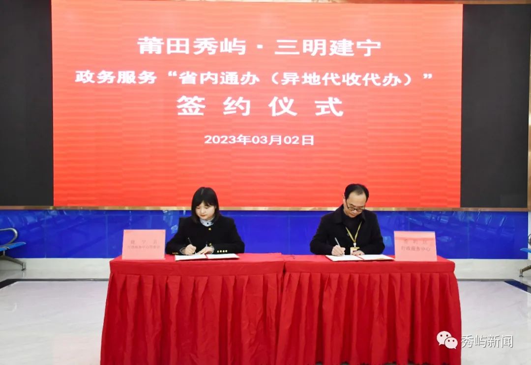3月2日上午,秀屿·建宁政务服务《“省内通办”(异地代收代办)合作协议》正式签约。