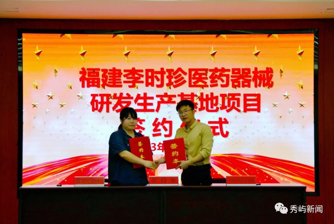 5月19日上午,秀屿区举行项目签约仪式,秀屿鲍鱼科技产业园、福建李时珍医药器械研发生产基地(二期)2个项目正式签约,规划总投资约15亿元。副区长顾斌出席签约仪式。
