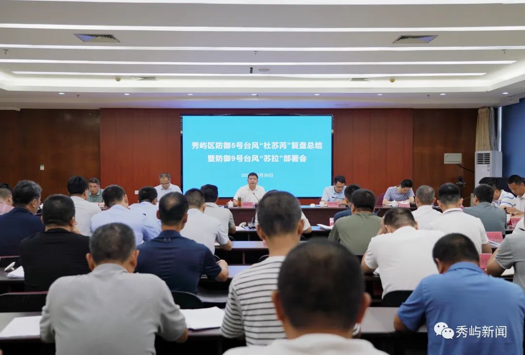 8月30日下午,秀屿区召开防御5号台风“杜苏芮”复盘总结暨防御9号台风“苏拉”部署会。区委副书记、区长郑松青出席会议并作强调讲话,区委常委、常务副区长刘基棠做具体部署。