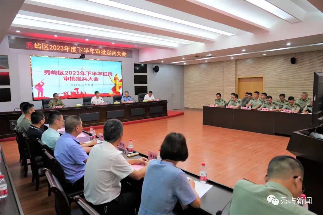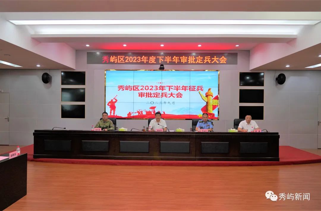 近日,秀屿区召开2023年下半年征兵审批定兵会议。区委副书记、区长、区征兵工作领导小组组长郑松青出席并讲话。区委常委、区征兵工作领导小组副组长张利清,副区长、秀屿公安分局局长张胜参加,区征兵工作领导小组副组长、区征兵办主任卓益忠主持会议。
