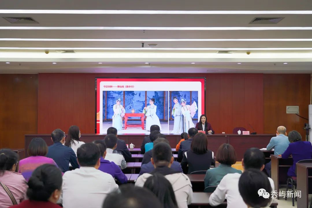 党的二十大代表、“福小宣·理响莆阳”宣讲队成员、莆仙戏剧院副院长黄艳艳以《从莆仙戏<踏伞行>看中华传统文化的传承与发展》为题,从学习贯彻党的二十大精神,推进文化自信自强入题,结合自身戏曲工作经历,用生动的语言、质朴的情感和鲜活的事例,讲述传统戏曲创作在现代背景下的突破与创新。