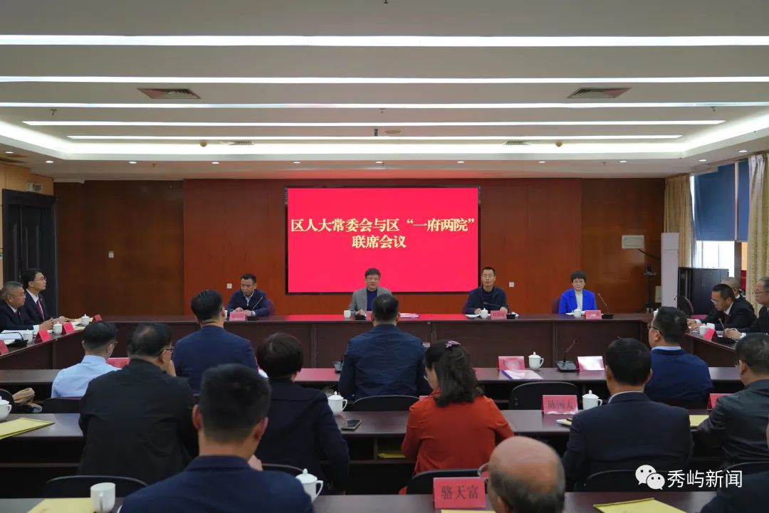 12月19日上午,秀屿区人大常委会与区“一府两院”联席会议召开。区领导郑松青、杨玉华、刘基棠、林常康、余金阳、吴素娥、顾斌、邱玉勇,区法院院长许一新,区检察院检察长吴晓丹等出席会议。