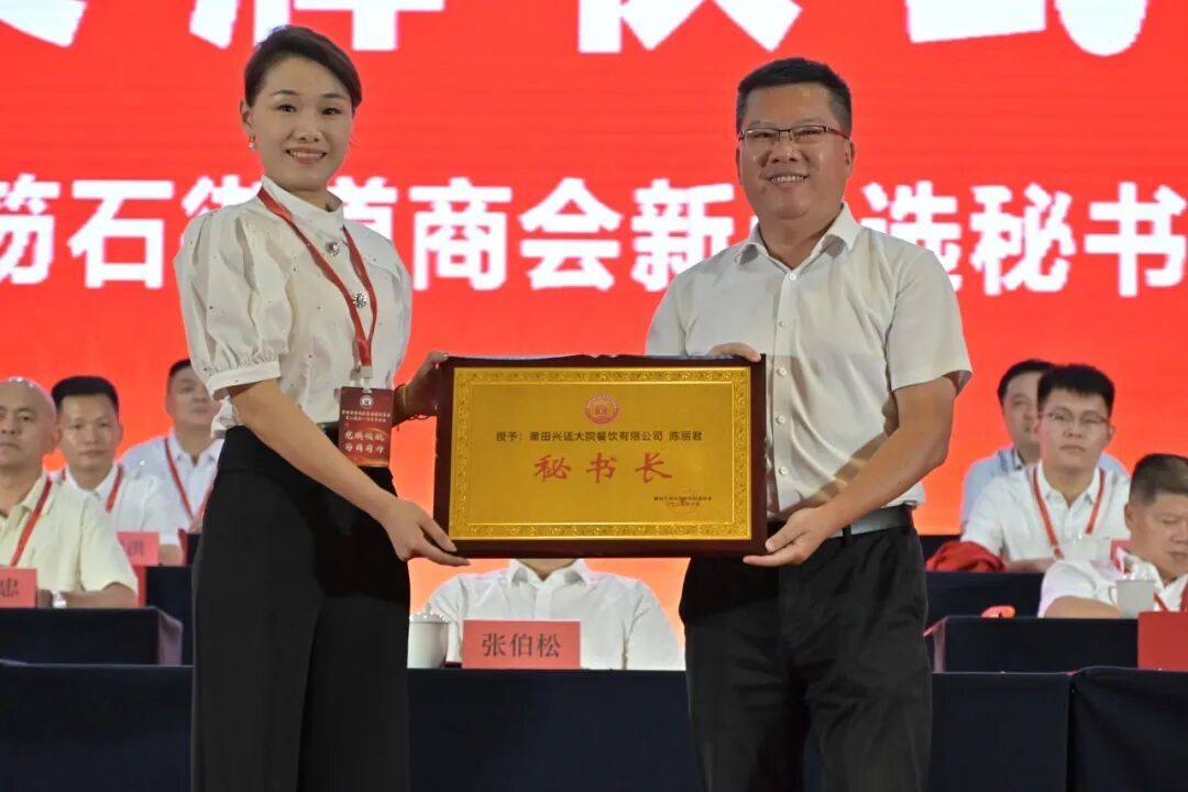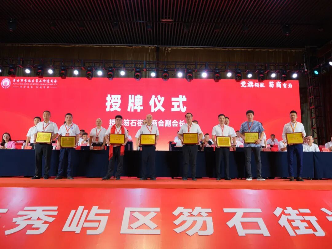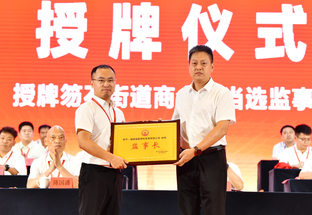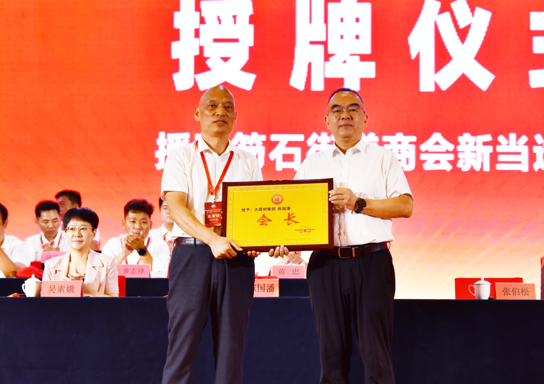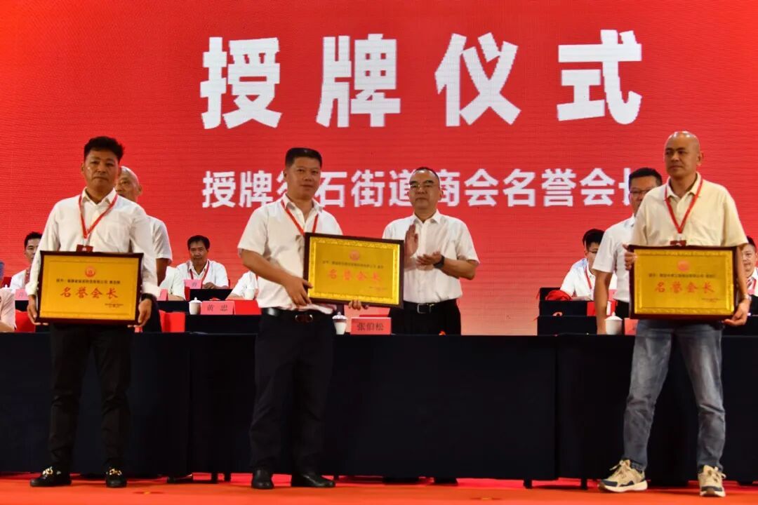 在授牌仪式上,与会领导为新当选的商会领导班子成员及聘任的名誉会长颁发荣誉牌匾,勉励他们不负众望、履职尽责,为推动区域经济与社会发展贡献智慧与力量。