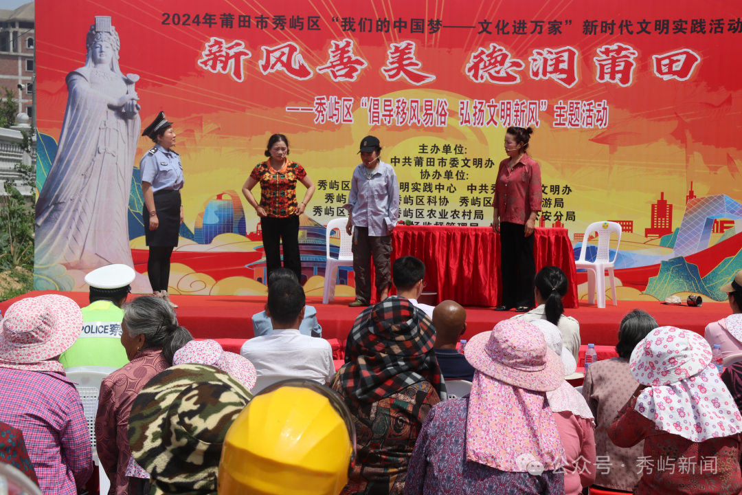 为推进文化传承发展,推动移风易俗,倡导文明新风,5月17日上午,2024年秀屿区“我们的中国梦-文化进万家”暨“倡导移风易俗 弘扬文明新风”新时代文明实践活动在埭头镇武盛村举行,吸引了周边众多群众前来参加。本次活动为“新风善美,德润莆田”系列活动之一。