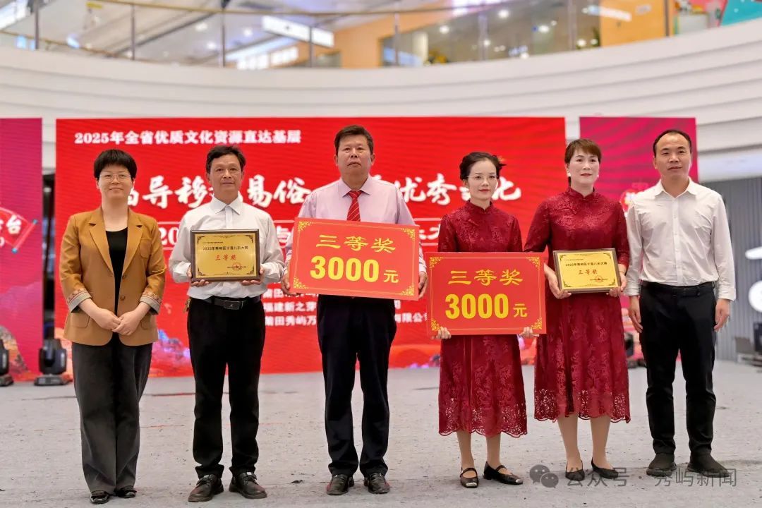 倡导移风易俗,传承优秀文化。近日,由区文体旅游局主办,区文化馆承办的2025年秀屿区十音八乐大赛在秀屿万达广场圆满落幕。副区长王浪出席并为获奖单位颁奖。