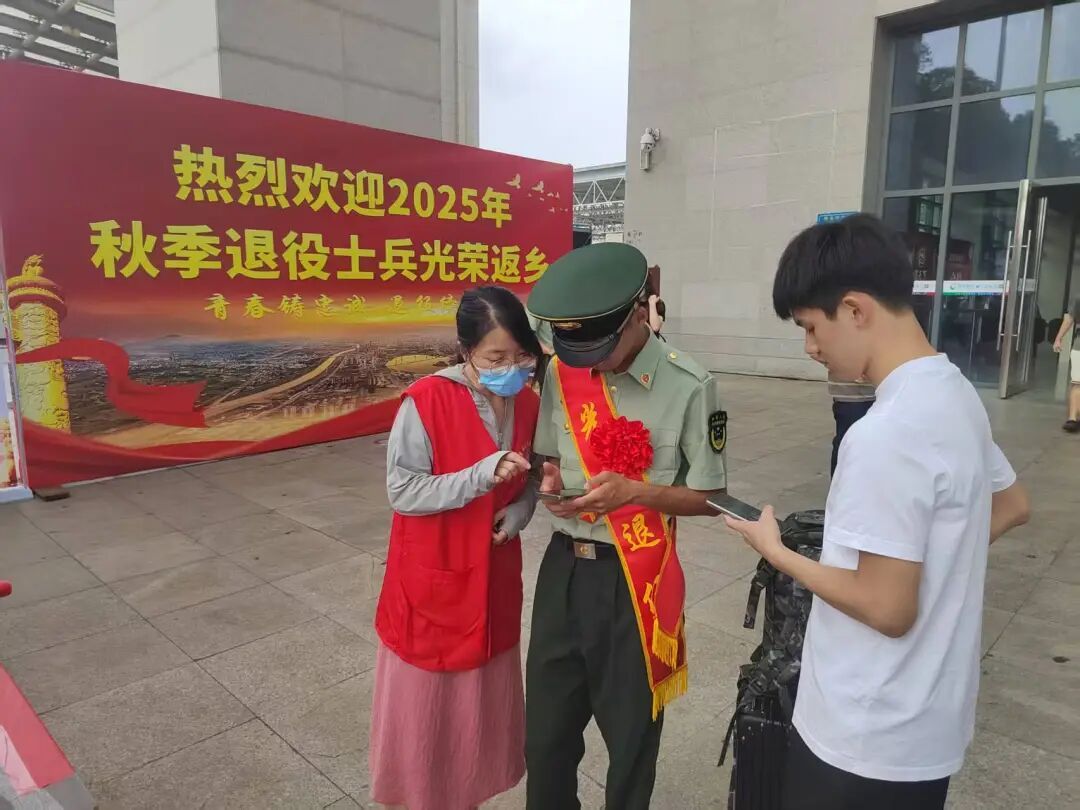 9月1日,区退役军人事务局在莆田动车站设立退役军人返乡服务点,热情迎接2025年秋季退役军人光荣返乡,让退役士兵们刚走出站台,便感受到来自家乡的温暖。