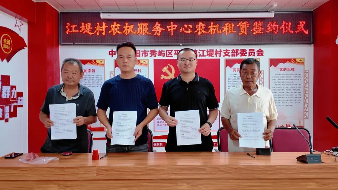 揭牌仪式上,江堤村村委会与莆田市中天现代农业发展有限公司、莆田市浓浓农业综合开发有限公司、莆田市绿益农业发展有限公司三家承租企业现场签订农机租赁协议。此次集中采购的6台大型轮式拖拉机将以租赁方式交付企业使用,进一步提升区域农业机械化作业水平。