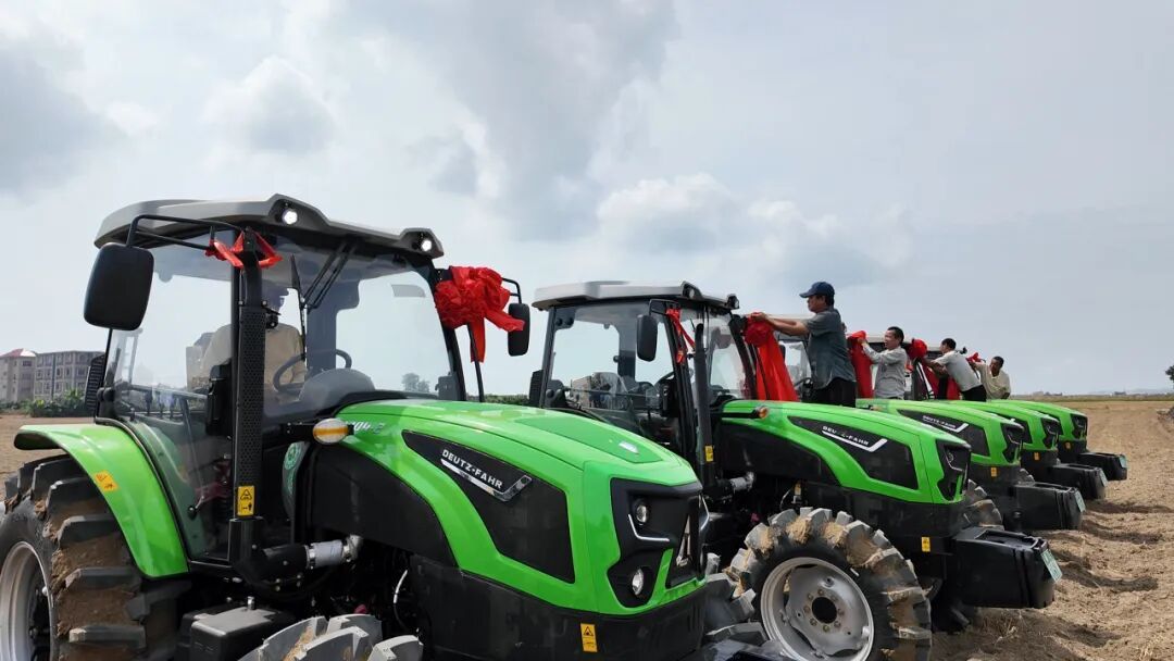 签约结束后,现场举行了简洁而隆重的农机交接仪式。六台披挂大红花的崭新拖拉机驶入田间,机械轰鸣声中,正式投入本地农业生产,展现出现代化农机集约高效的新图景。