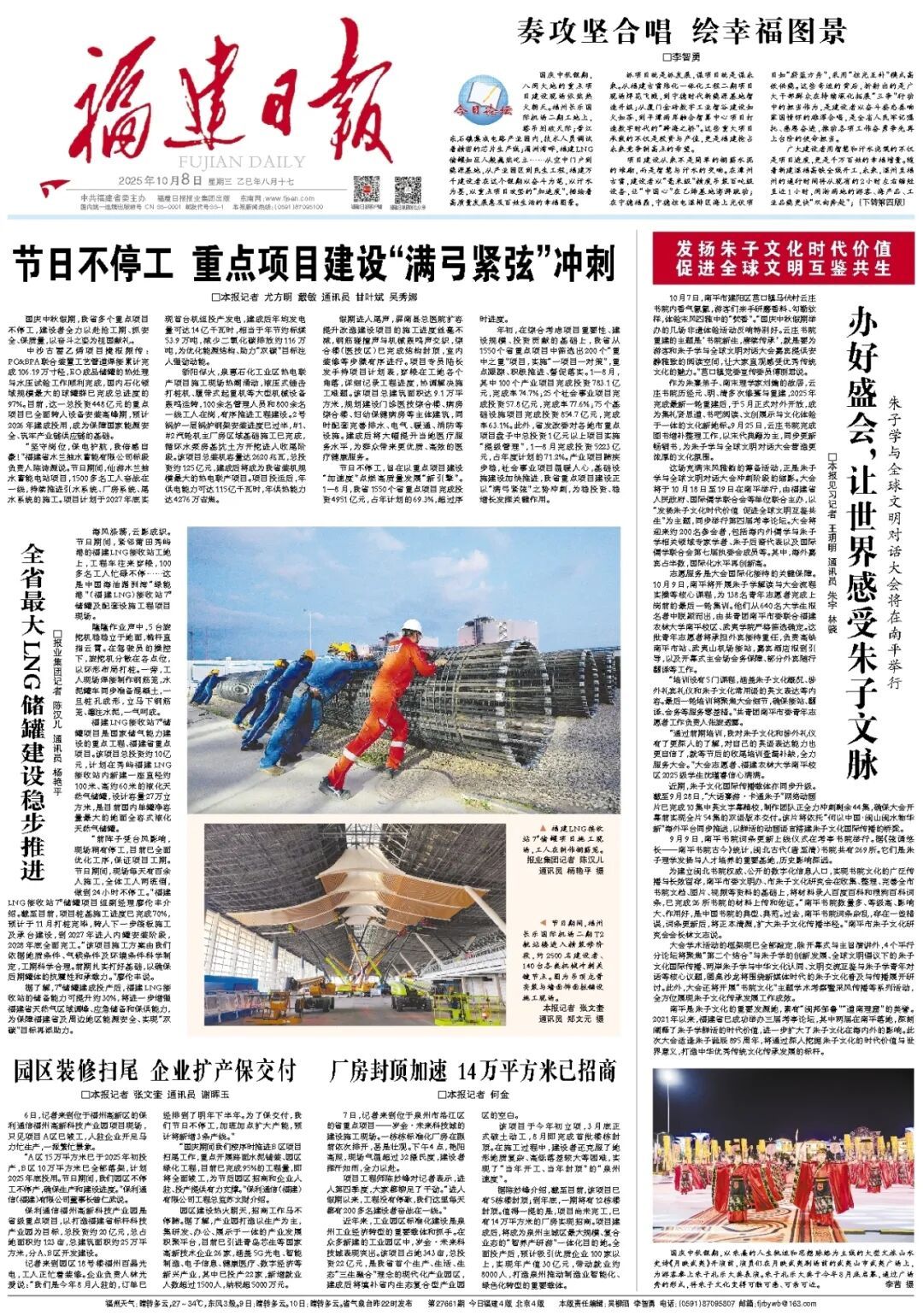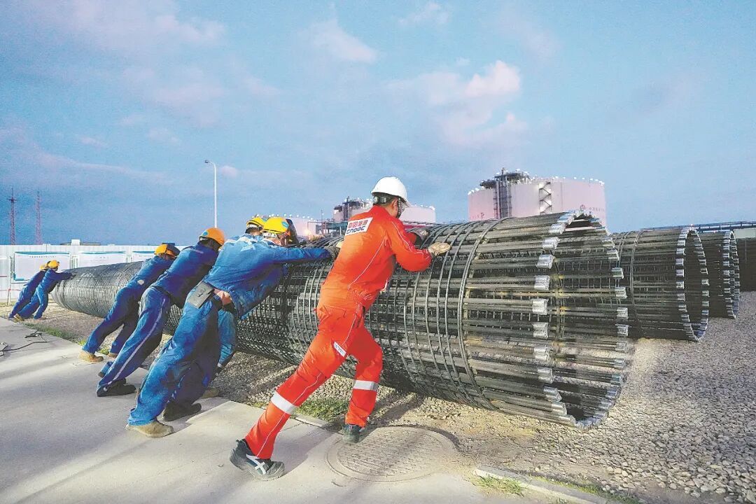 海风涤荡,云影成织。节日期间,紧邻莆田秀屿港的福建LNG接收站工地上,工程车往来穿梭,100多名工人忙碌不停……这是中国海油湄洲湾“绿能港”(福建LNG)接收站7^#储罐及配套设施工程项目现场。