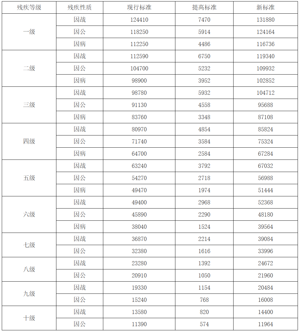 一、提高残疾军人(含伤残人民警察、伤残预备役人员和民兵民工、其他因公伤残人员)的残疾抚恤金、烈属(含因公牺牲军人遗属、病故军人遗属)的定期抚恤金、红军失散人员和在乡复员军人的定期生活补助金,调整后的标准见附件,调标所需经费由中央财政负担。