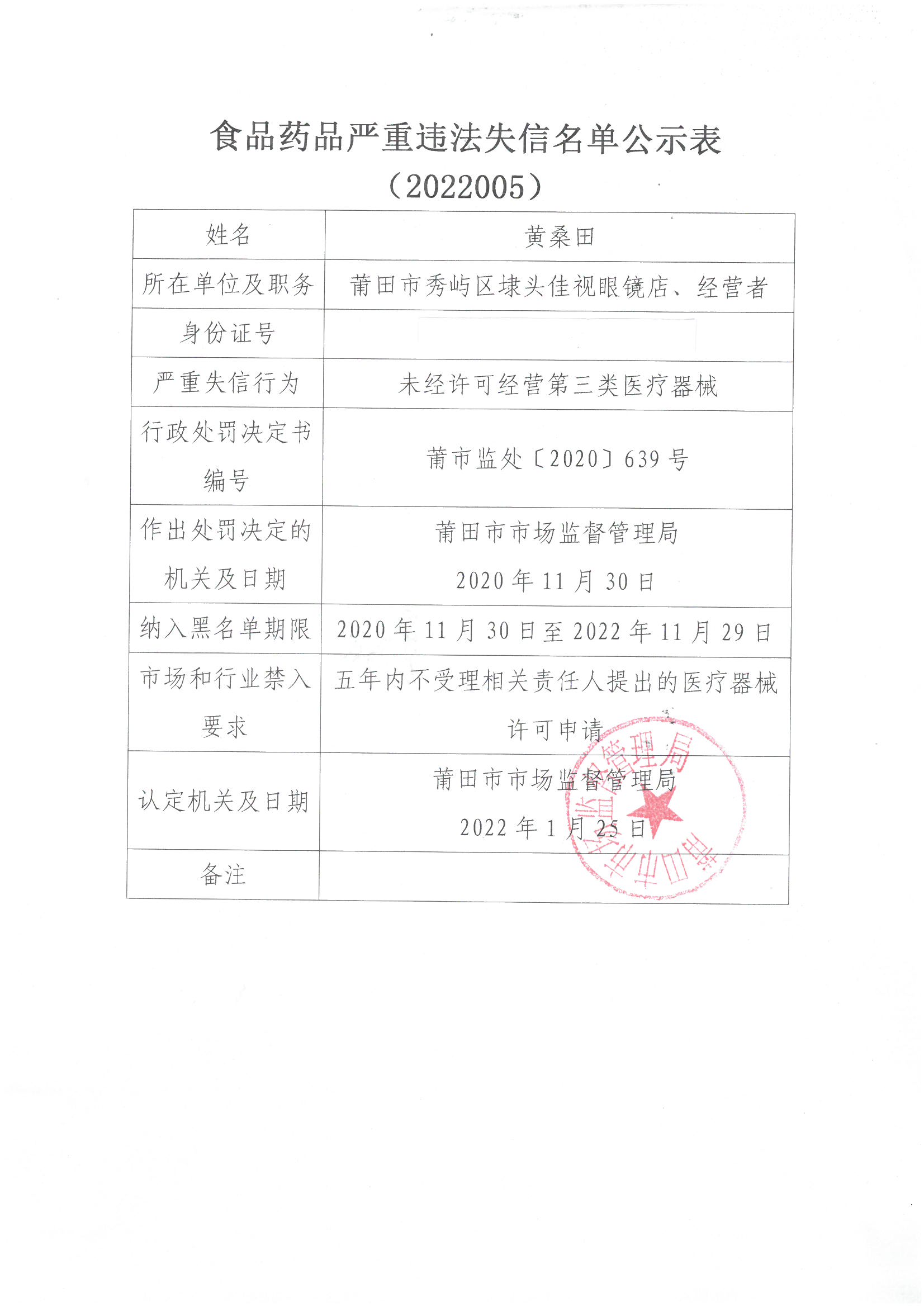 食品药品严重违法失信名单公示表