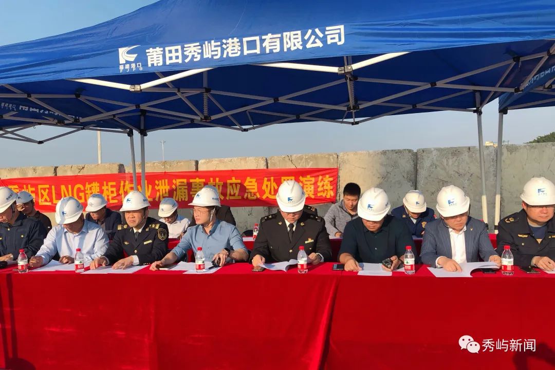 11月27日下午,LNG罐装集装箱生产安全事故应急演练在秀屿港口1#泊位举行。副区长顾斌出席,莆田海关、莆田海事、湄洲湾港口发展中心,秀屿区应急管理局、交通局、市场监管局、秀屿消防大队、临港工业园以及莆田港务集团、秀屿港口公司、海液通公司等近百位相关单位负责人、专家和有关人员参加观摩本次演练。