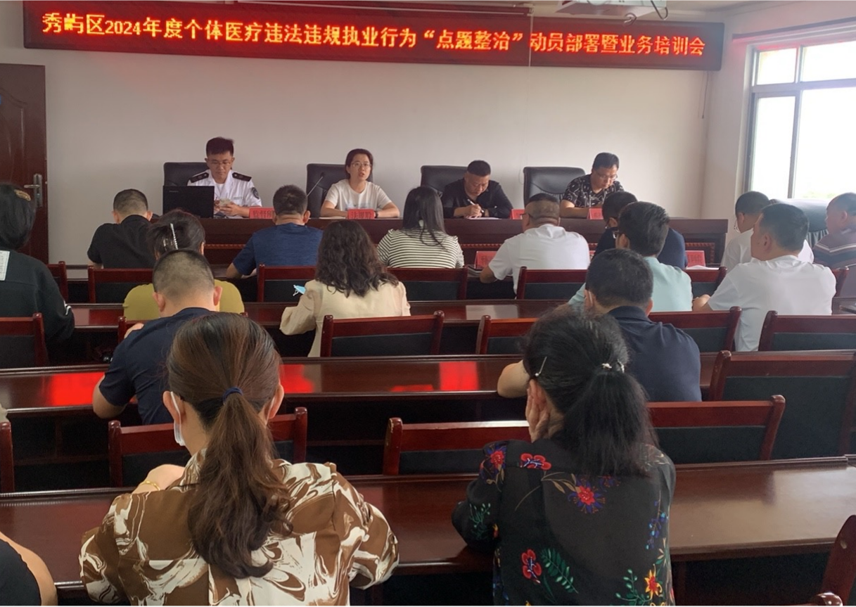 为贯彻落实省、市纪委监委2024年个体医疗机构违法违规执业行为“点题整治”工作部署要求,5月24日下午,区卫生健康局召集各乡镇卫生院(社区卫生服务中心)主要领导及全区31家个体医疗机构举行秀屿区2024年度个体医疗机构违法违规执业行为“点题整治”工作动员部署暨业务培训会,局分管领导邹俊、法规股负责人、区疾控中心副主任及区卫生健康监督所全体人员参会。