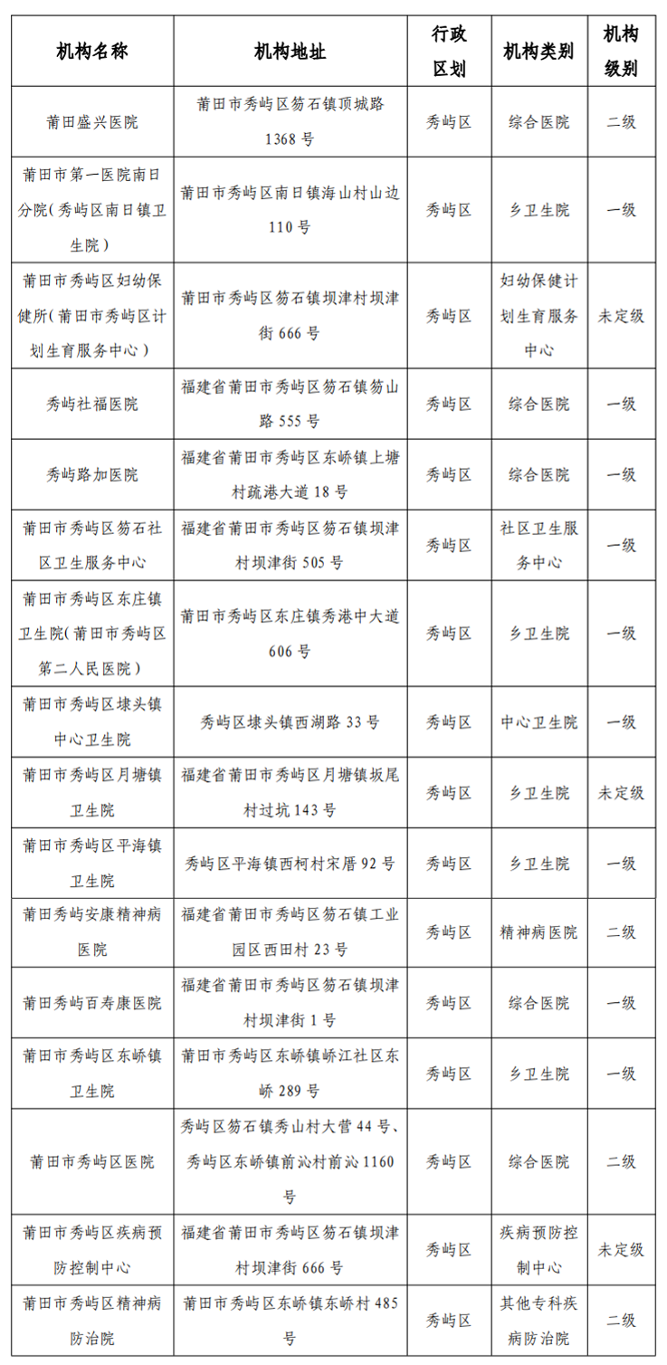 秀屿区医疗机构名单