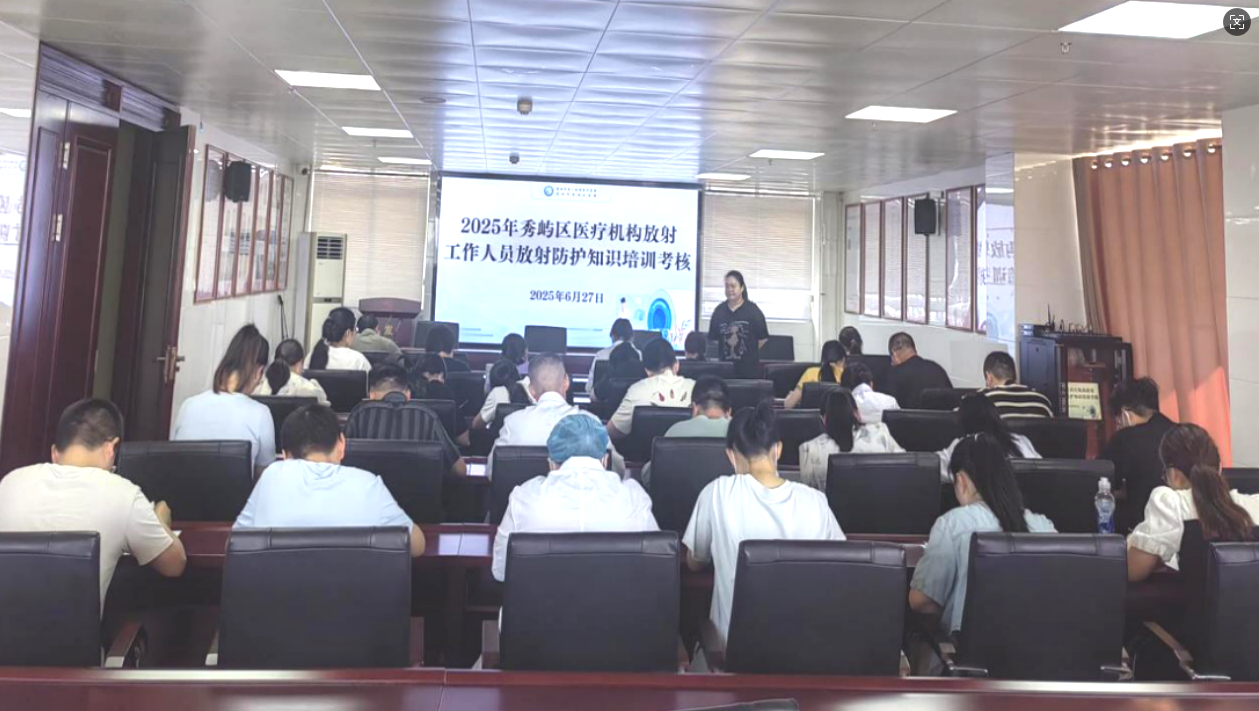 为深入贯彻落实《福建省卫生健康委员会关于做好放射工作人员职业健康培训考核工作的通知》精神,提高放射工作人员的职业卫生防护水平,保障医务人员和患者的健康权益,莆田市秀屿区卫生健康局于2025年6月27日在莆田市秀屿区医院第二会议室组织开展2025年秀屿区医疗机构放射工作人员放射防护知识培训考核,全区各医疗卫生机构共30余名放射工作人员参加考核。
